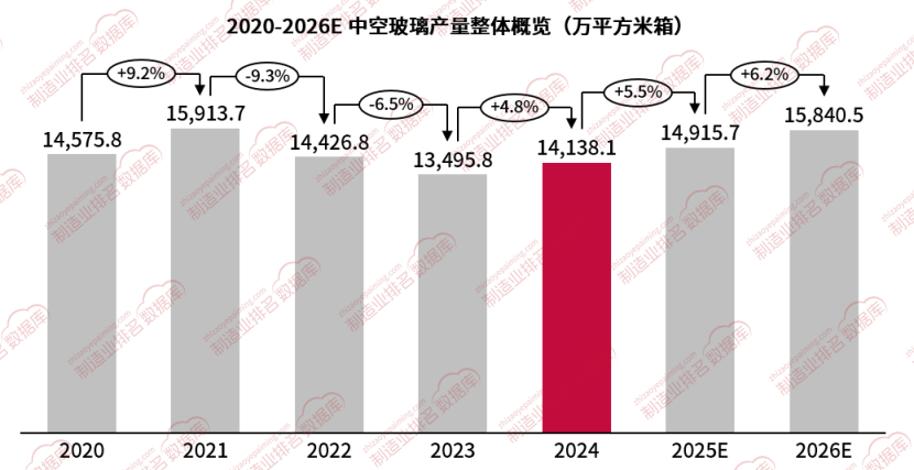 2024年,中空玻璃市场重新呈现增长态势,全年产量达到14138.1万平方米箱,较2023年同比增长4.8%。这一增长得益于建筑节能需求的提升以及政策对绿色建材的支持。随着新建建筑和既有建筑改造项目的增加,中空玻璃作为重要的节能材料,其市场需求不断扩大。