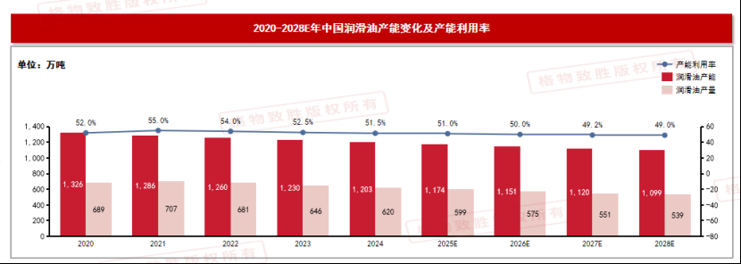 国内润滑油产能变化及产能利用率