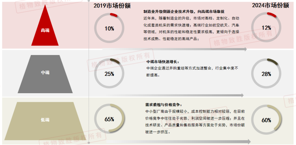 机床市场竞争加剧,需求萎缩与价格竞争,高端市场需求增长,低端市场优胜劣汰,中端市场快速增长。