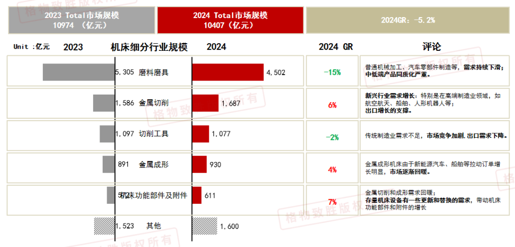 2024年机床市场海外需求增长,设备更新需求增长和下游行业需求回暖等因素促进金属切削和成形增长。