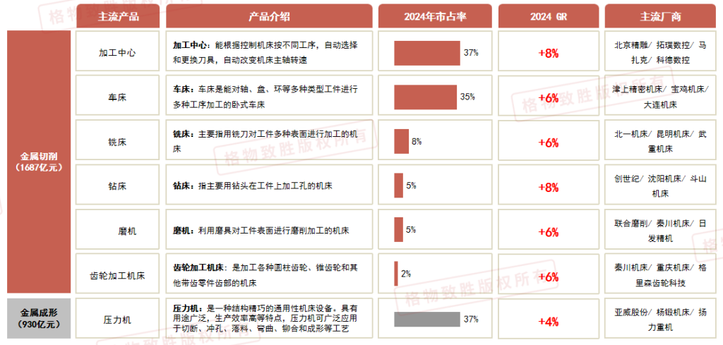 2025年中国机床行业市场规模-细分产品