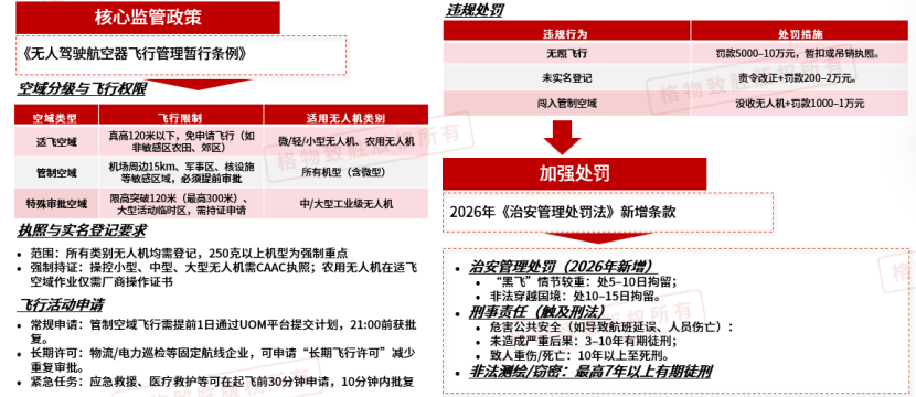 • 为应对无人机技术快速发展带来的监管挑战,我国自2009年起启动监管体系,2023年进入全面深化阶段,预计2027年将建成完善的无人机监管体系,实现全链条规范化管理。