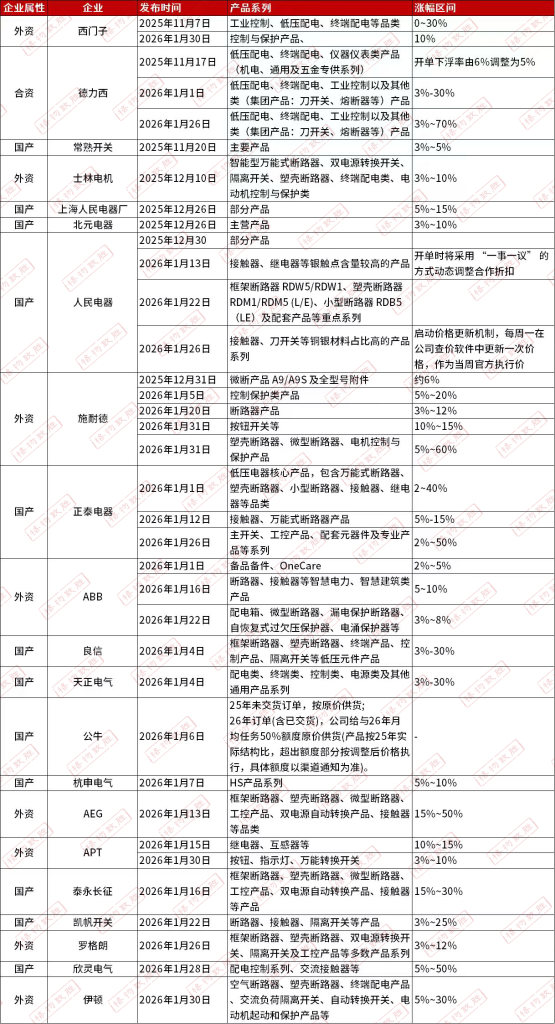 近期,低压电器行业从业者的朋友圈被各类红头调价函刷屏,从行业头部企业到地方厂商,新一轮涨价潮如约而至。这并非单纯的价格波动,而是产业链长期积压的成本压力迎来的集中释放。