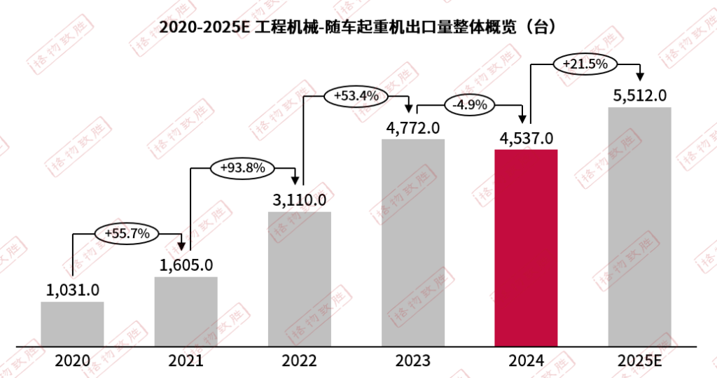 2020年,国产随车起重机在东南亚、中东等市场崭露头角,为全球化布局筑牢根基。此后几年,出海步伐不断加快,海外订单量连年稳步增长,出口市场逐步成为行业增长的重要支撑,国产装备的全球认可度持续飙升。