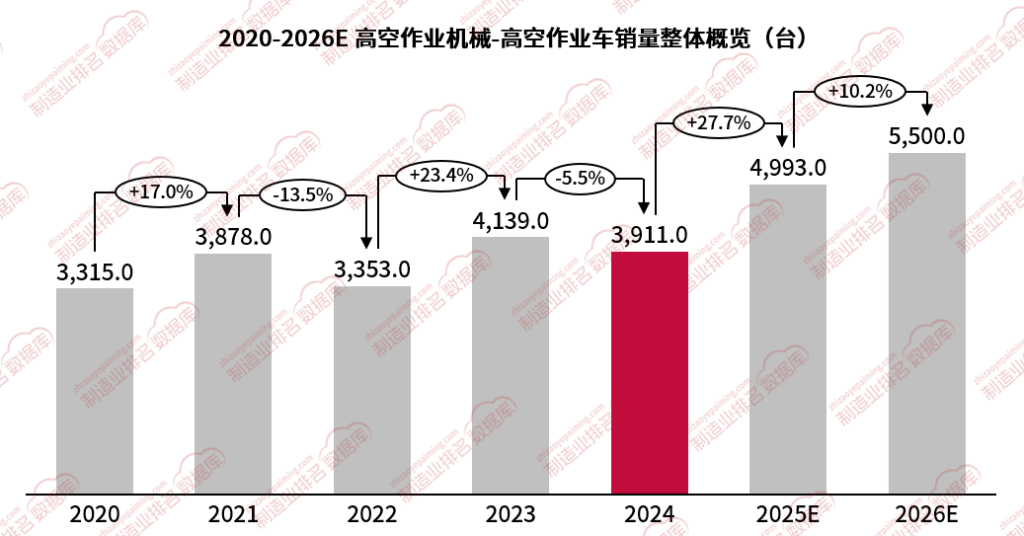 展望2026年,高空作业车行业将延续“总量稳健、结构优化”的态势,预测2026年高空作业车整体销量将会达到5500台。