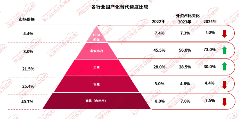 整体来看外资品牌占比不高,约为30%,但在一些高端制造领域,外资品牌凭借技术优势形成一定的护城河。