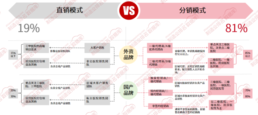 直销模式以国产品牌为主,市场包括公立及民营医院,公立医院主要为三级医院。民营医院在采购时注重性价比,代理商利润空间有限,因此厂商采取直销方式以确保在民营医院市场的持续发展。