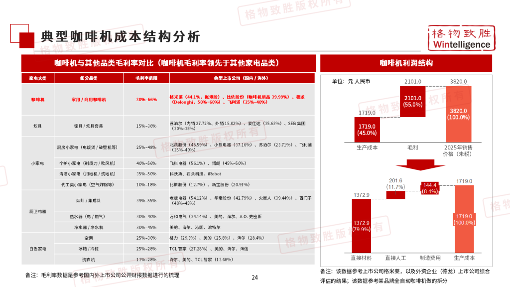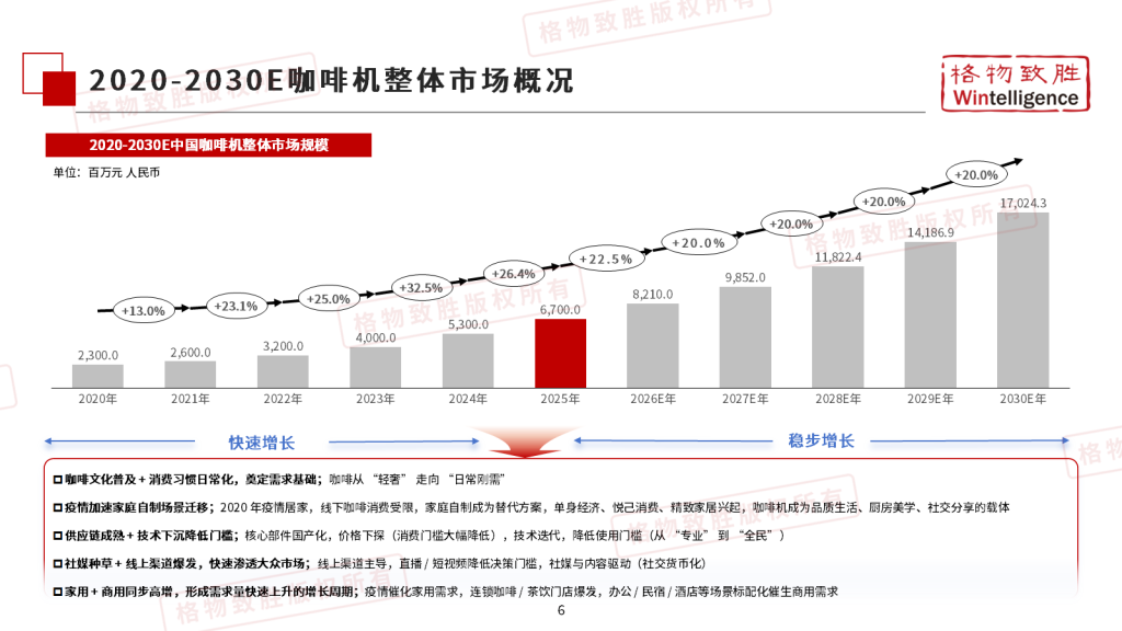 《2026年中国咖啡机行业市场白皮书》主要涵盖的重点内容:市场整体规模及细分市场规模(应用场景、产品类型、自动化程度、市场区域)、市场份额、商业模式、成本结构。