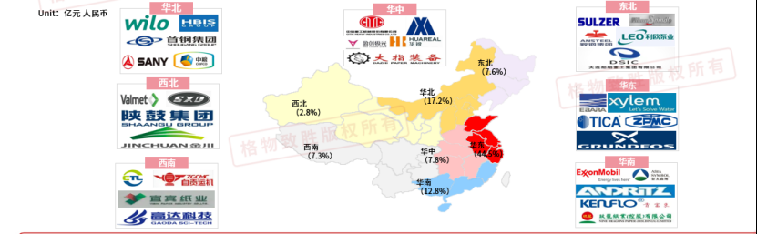 - 以华东和华北,华南为主,主要需求在风机,泵,压缩机的生产集中区域。